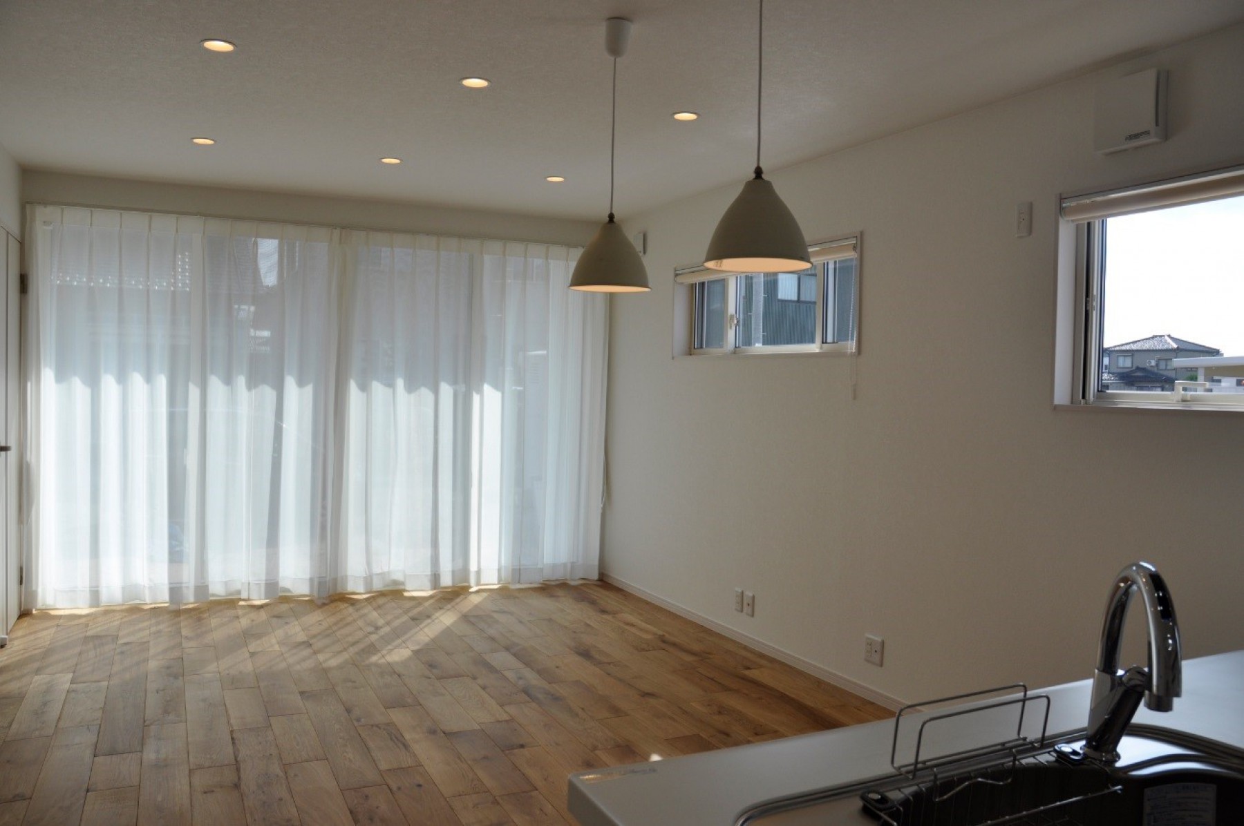東向きのハイサッシからの採光で、明るいリビングになっています。