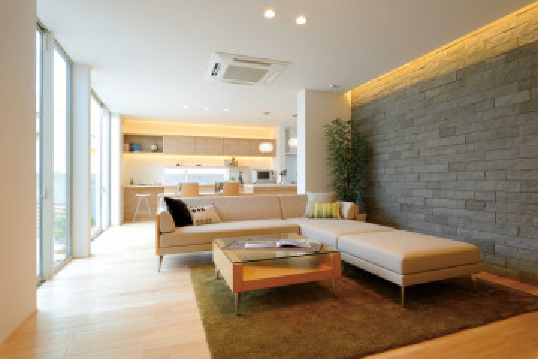 2400mの天井高に合わせたハイサッシを採用。 中庭とのつながりを最大限にいかした明るく開放的なLDK