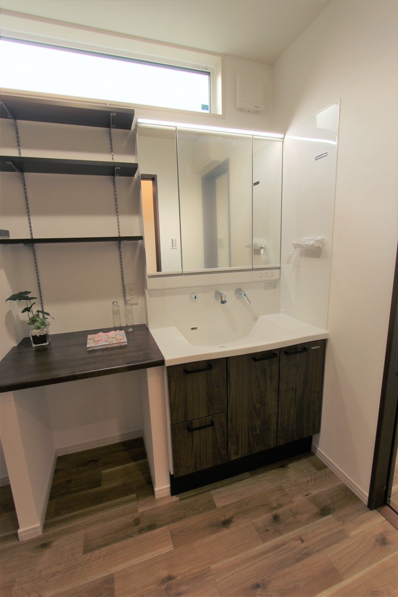 可動棚を備えたユーティリティ。カウンターがあるので使い勝手抜群です。