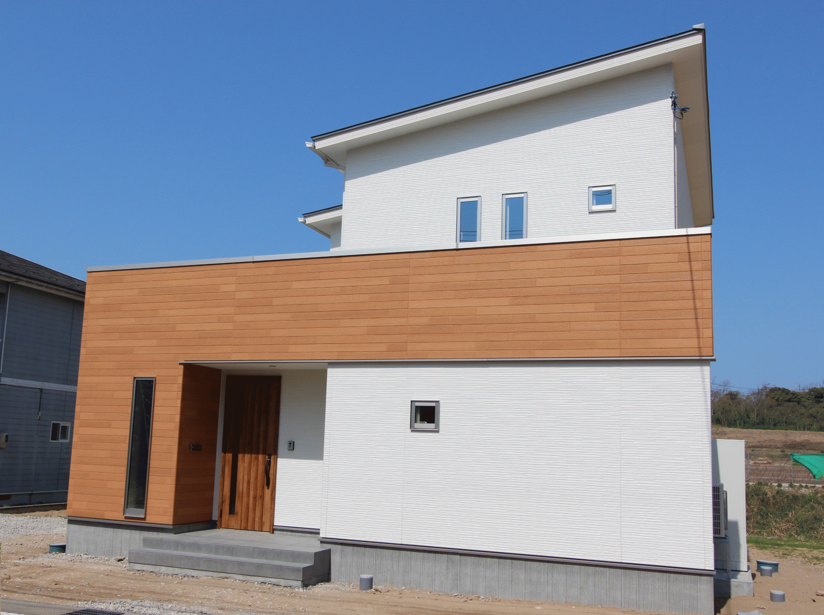 ウッド調のサイディングがアクセントになり、インパクトのあるデザインになりました。