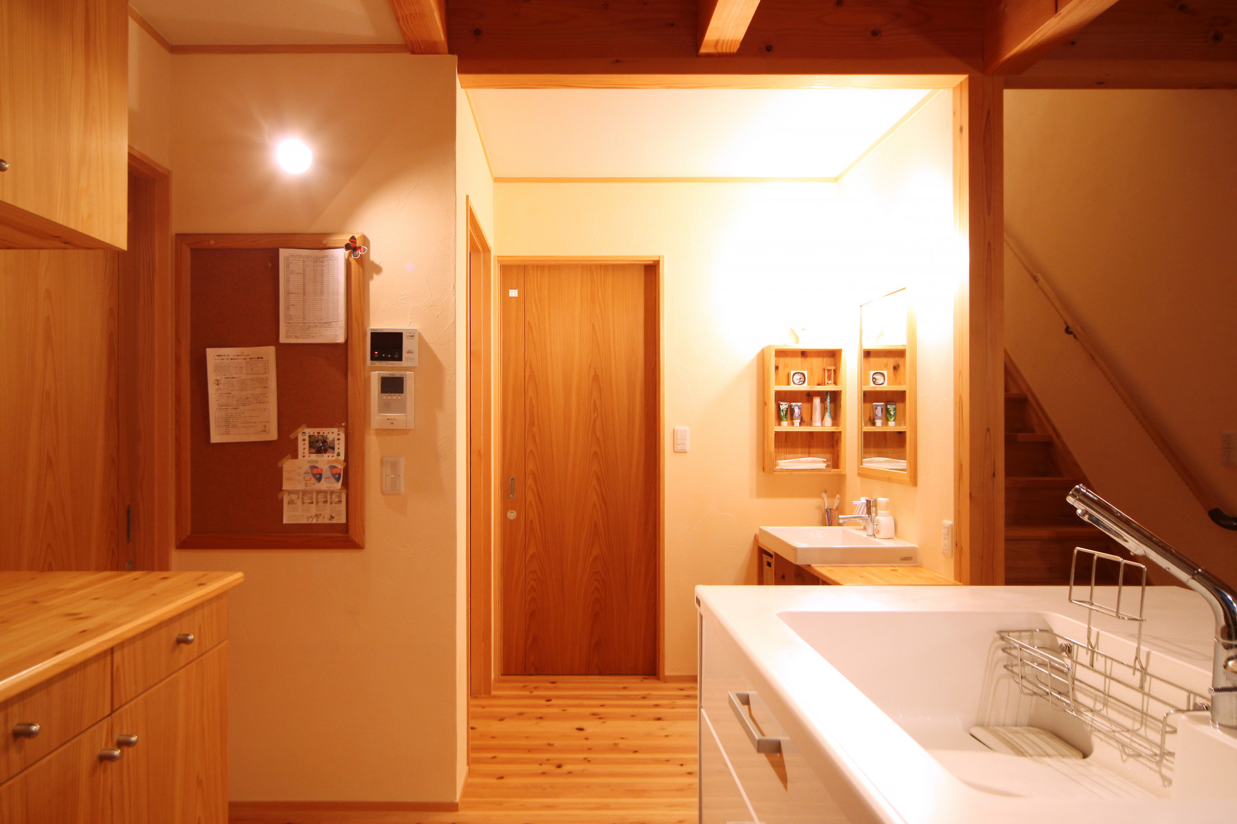 木の空間を活かし、オープンな対面式キッチン.家族がコミュニケーションがとりやすい。